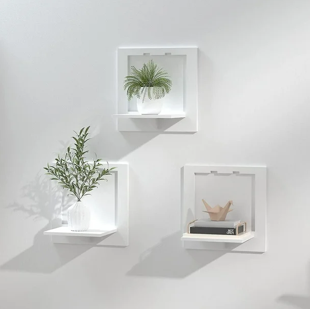 White PVC Square Wall Shelf – Set of 3pcs