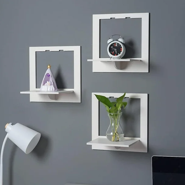 White PVC Square Wall Shelf - Set of 3pcs